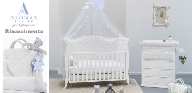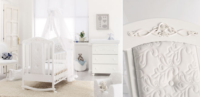 Eine besonders anmutende Kindermöbel Kollektion von Azzurra Design nennt sich Carisma . Die Babymöbel sind in reinem Weiß gehalten und am Fußende mit einem Polster aus Öko-Kunstleder verziert.
