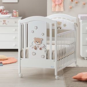 Um unsere Baby- und Kinderbetten möglichst vielseitig und auch lang nutzen zu können, bieten wir eine Fülle an verschiedensten praktischen Zubehörteilen an. Zum Beispiel einen textilen Bettverkleinerer, der dem Neugeborenen Geborgenheit vermittelt und es in dem großen Bettchen etwas eingrenzt. Das Nestchen besteht zu 100% aus atmungsaktiver Baumwolle und kann am oberen Rand des Bettchens mit Bändern fixiert werden. Oder aber eine aufsetzbare Wickelplatte, welche das Wickeln am Bett ermöglicht. Eine weiche textile Wickelauflage mit Sternen ist direkt enthalten. Außerdem haben Sie die Möglichkeit ein Sprossengitter durch eines mit Durchschlupfmöglichkeit zu ersetzen, sodaß Sie ihrem Kleinkind ermöglichen können, selbstständig ins Bett zu krabbeln oder eben wieder heraus. Dafür wir das mit Sternen dekorierte Panel einfach aus dem Gitter herausgelöst (siehe Bilder). Die letzte Umbaumöglichkeit auf dem Weg zum selbstständiger werden, bietet unser Rausfallschutz, der ihr Kind vor dem herauspurzeln im Schlaf schützen soll.