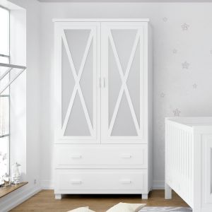 Das Kinderbett ist in rein weiß gehalten und kann optional mit der passenden Wickelkommode und dem passenden Kleiderschrank zu einem vollständigen Kinderzimmer kombiniert und ergänzt werden.