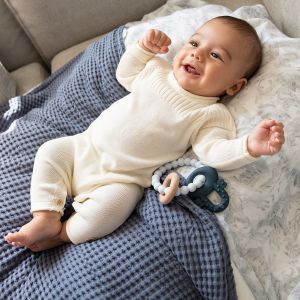 Die Knitted Collection wird aus natürlichem Bio-Bambus-Strickgarn hergestellt, welches eine temperaturregulierende Funktionen hat und somit im Sommer wie im Winter geeignet ist. Das Bambusfasergewebe garantiert maximalen Komfort für die Haut des Babys.