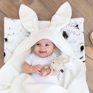 Der Bambus Baby- und Kinder-Bademantel mit Kapuze und Schlappohren besteht aus Bio-Bambus-Frottee.Die Bambus-Frottee-Qualität ist super saugstark und kann dreimal mehr Feuchtigkeit aufnehmen als Baumwolle.