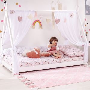 Unser neues Kinderbett Junior kommt mit jeder Menge textilem Zubehör daher. Dazu gehört auch eine dekorative Girlande welche in zwei verschiedenen Varianten erhältlich ist. Die Variante Ballerina besteht aus gepolsterten Stoffherzen in Rosétönen. Die Variante Fantasia ist eine Wimpelkette, welche hauptsächlich Senffarben ist. (Siehe Bilder)