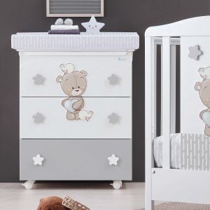 Der Baby Wickelaufsatz von Azzurra eignet sich hervorragend für alle Kommoden, um diese als praktische Wickelkommode zu nutzen oder umzurüsten vom seitlichen zum frontalen Wickeln (siehe Fotos). Der Wickelaufsatz verfügt über zwei erhöhte Seiten, die ein Abrollen des Babys verhindern. Im Lieferumfang ist eine weiße gesteppte Stoff-Wickelunterlage mit grauen Sternen enthalten, die Ihrem Baby eine angenehme Liegefläche bietet!